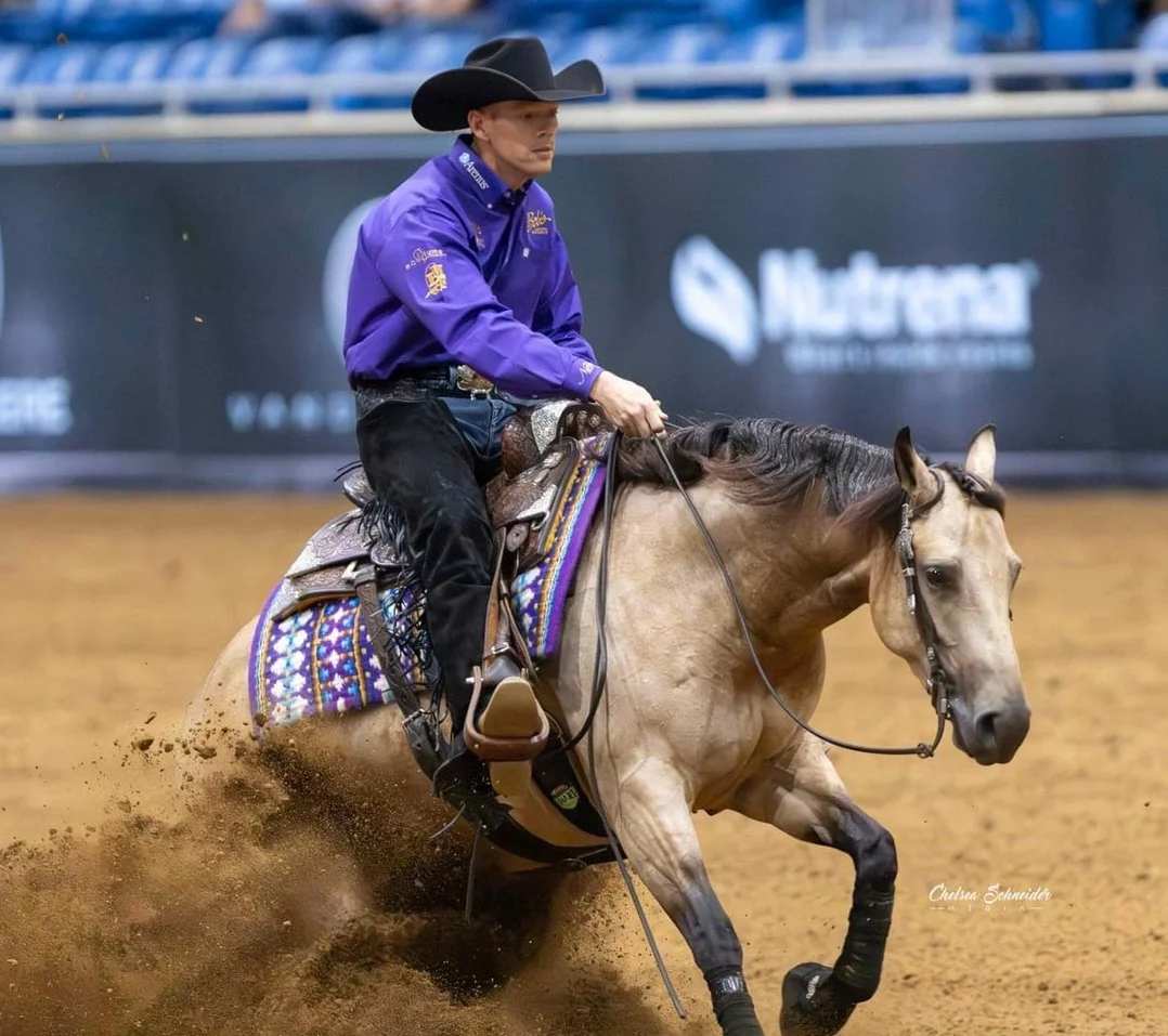 Gabe Hutchins has an impressive resume, which includes being an NRHA top twenty professional and having been a finalist multiple times in every major NRHA event. In addition to this, Gabe is the 2 time NRHA L4 Open Wild Card Challenge Champion and has an LTE of $670,000+.